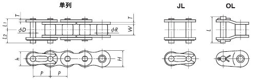 节距 P | 滚子直径 R | 内链节内宽 W | 叶片 | 销轴 | |||||