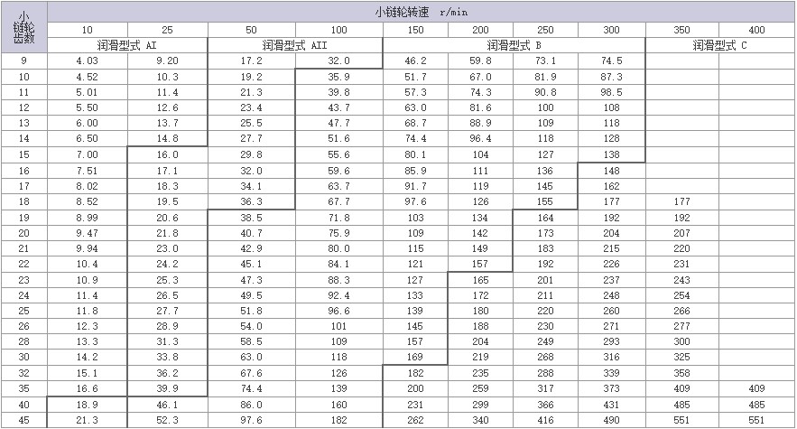 | 1.在高速使用范围,请选用RS滚子链。 |