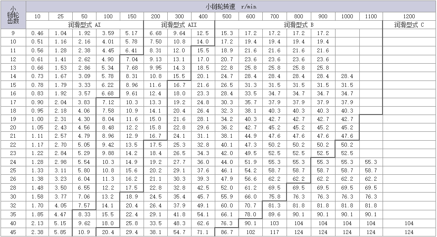 | 1.在高速使用范围,请选用RS滚子链。 |