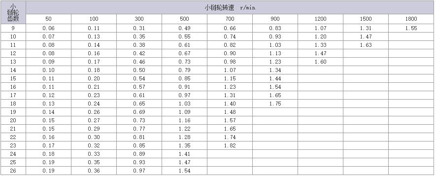 | 1.使用过渡链节(OL)时,传动能力为上表的80%。 |