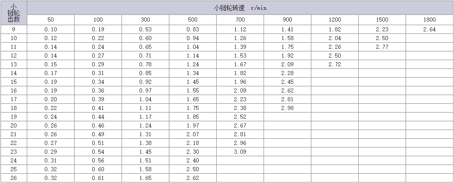 | 1.使用过渡链节(OL)时,传动能力为上表的80%。 |