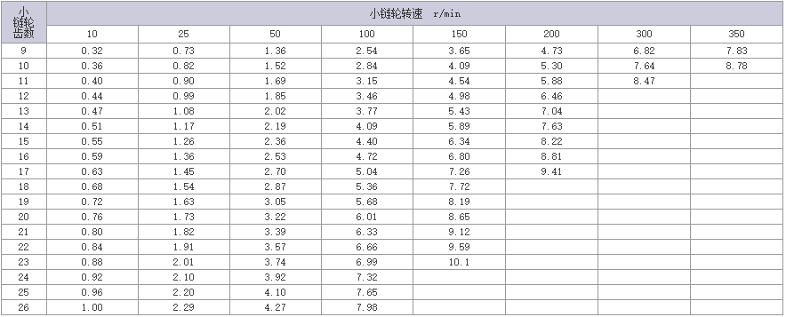 | 1.使用过渡链节(OL)时,传动能力为上表的80%。 |