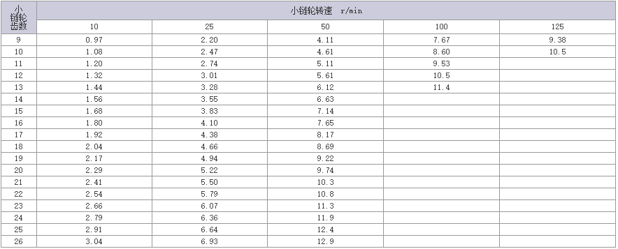 | 1.使用过渡链节(OL)时,传动能力为上表的80%。 |
