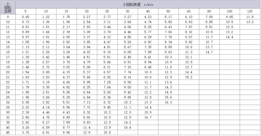 | 规格型号 | 排数 | 最小抗拉强度kN {kgf} | 约重 kg/m | 组件的链节数 | 容许速度 m/min | 可使用温度范围 |