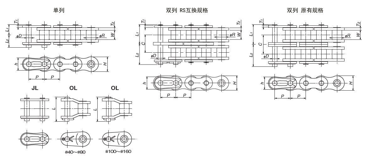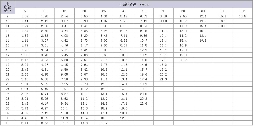 | 1.使用过渡链节(OL)时,传动能力为上表的80%。 |