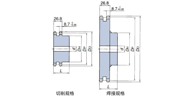 | 型号 | 齿数 | 节距圆 直径DP | 外径 DO | 预制 孔径d | 最大轴 孔径d | 轮毂 外径DH | 轮毂 长度L | 大概 质量 | 材质 规格 | DXF 图形 数据 | 外形图 | 标准 价格 | 交货期 | フィットボア 軸穴 加工品 |