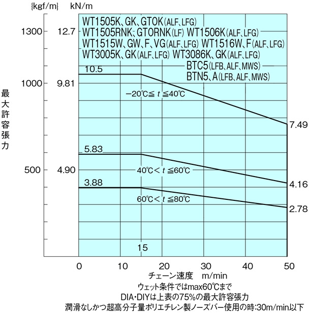 另外根据使用条件(温度,速度等)相异。请参照链条的容许能力线图。